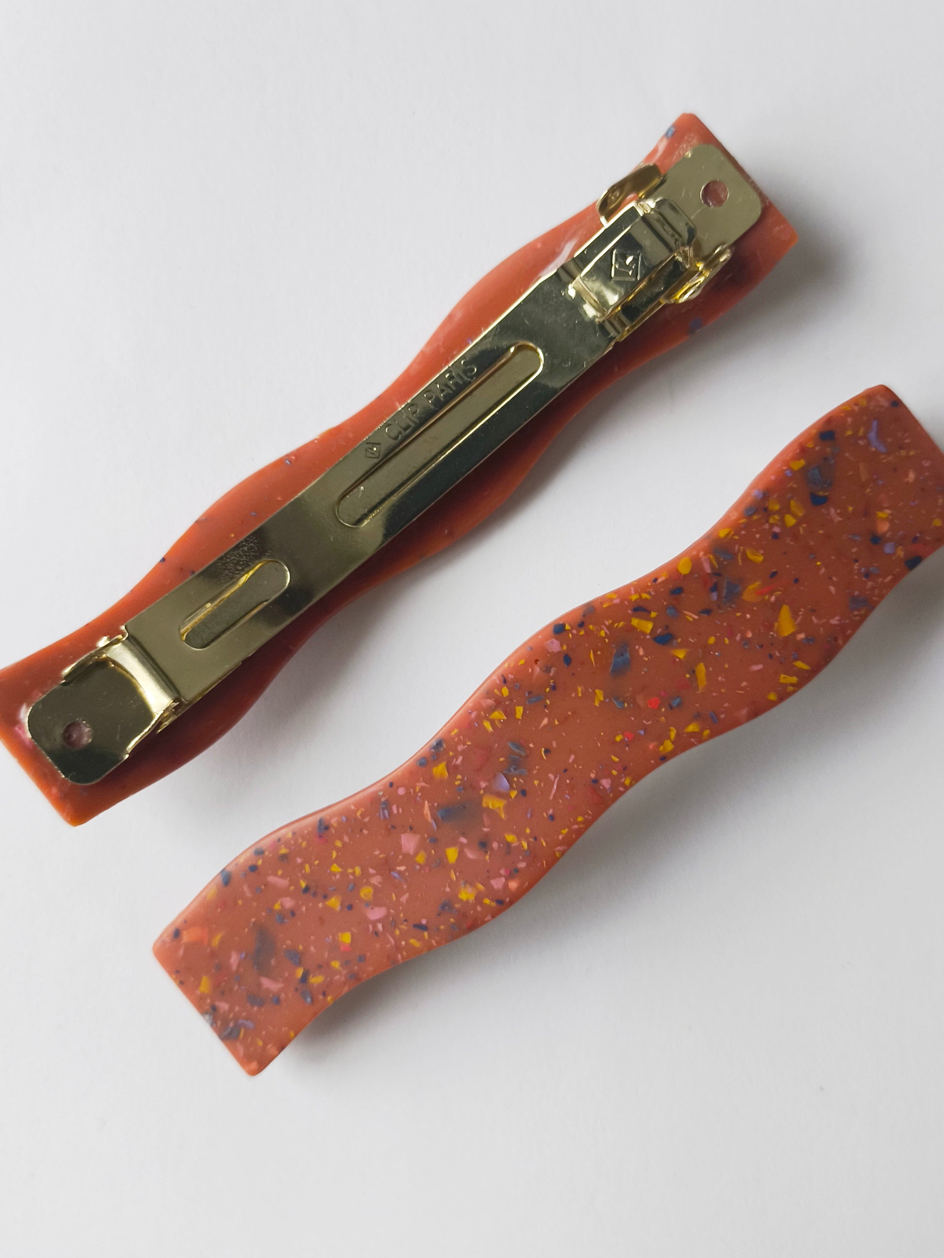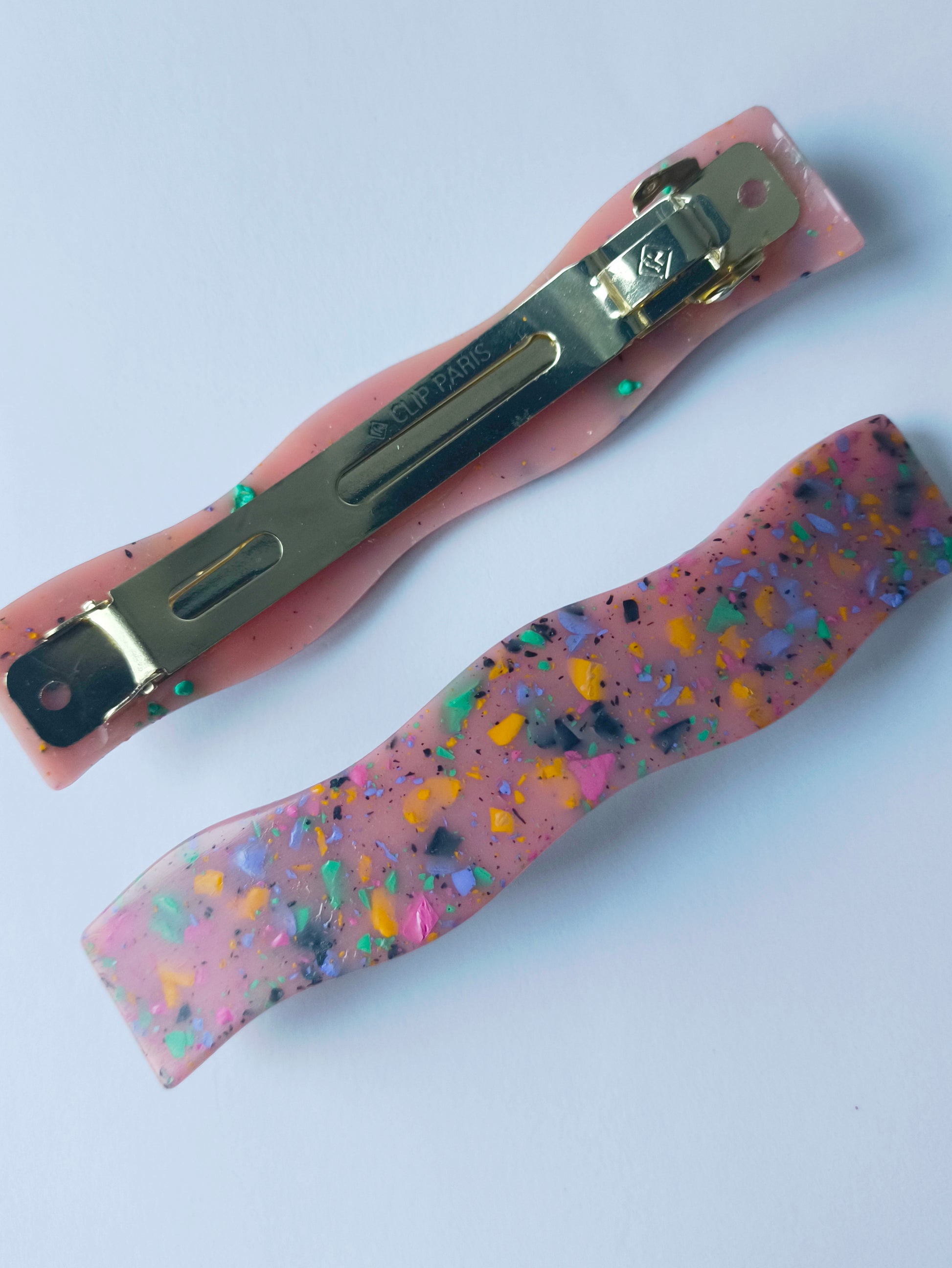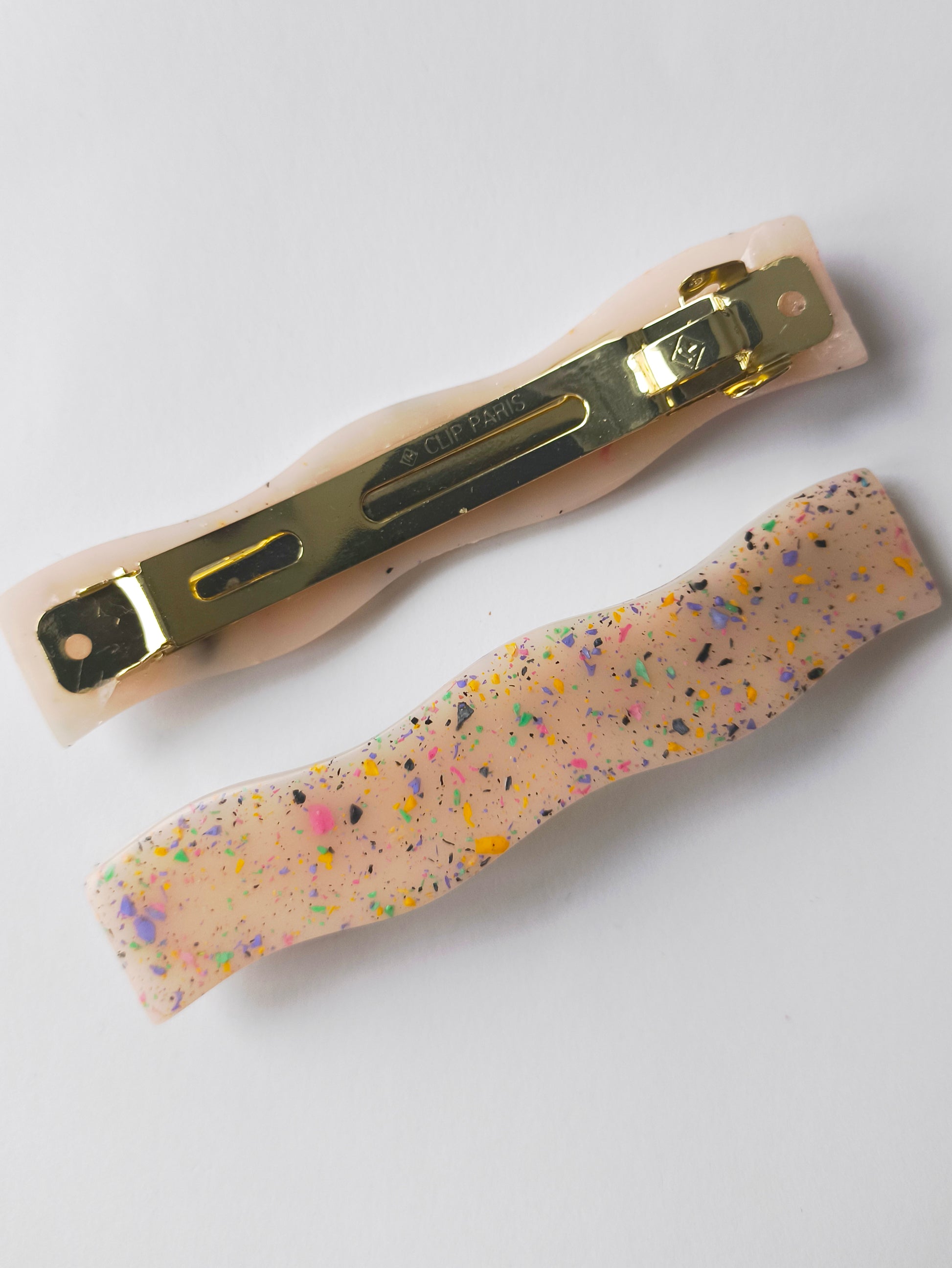 Material: Resina epoxi, cierre tipo francés metálico, sin níquel